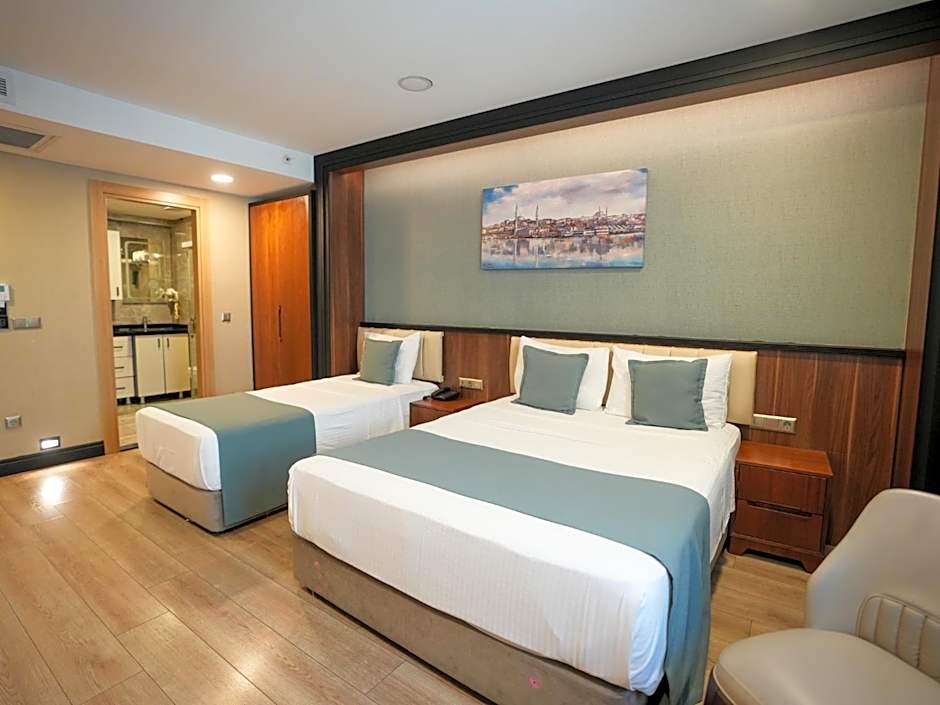 The air-conditioned suite features 1 bedroom and 1 bathroom with a shower and a hairdryer. The suite offers soundproof walls, a mini-bar, a tea and coffee maker, a flat-screen TV with cable channels, as well as city views. The unit offers 4 beds.